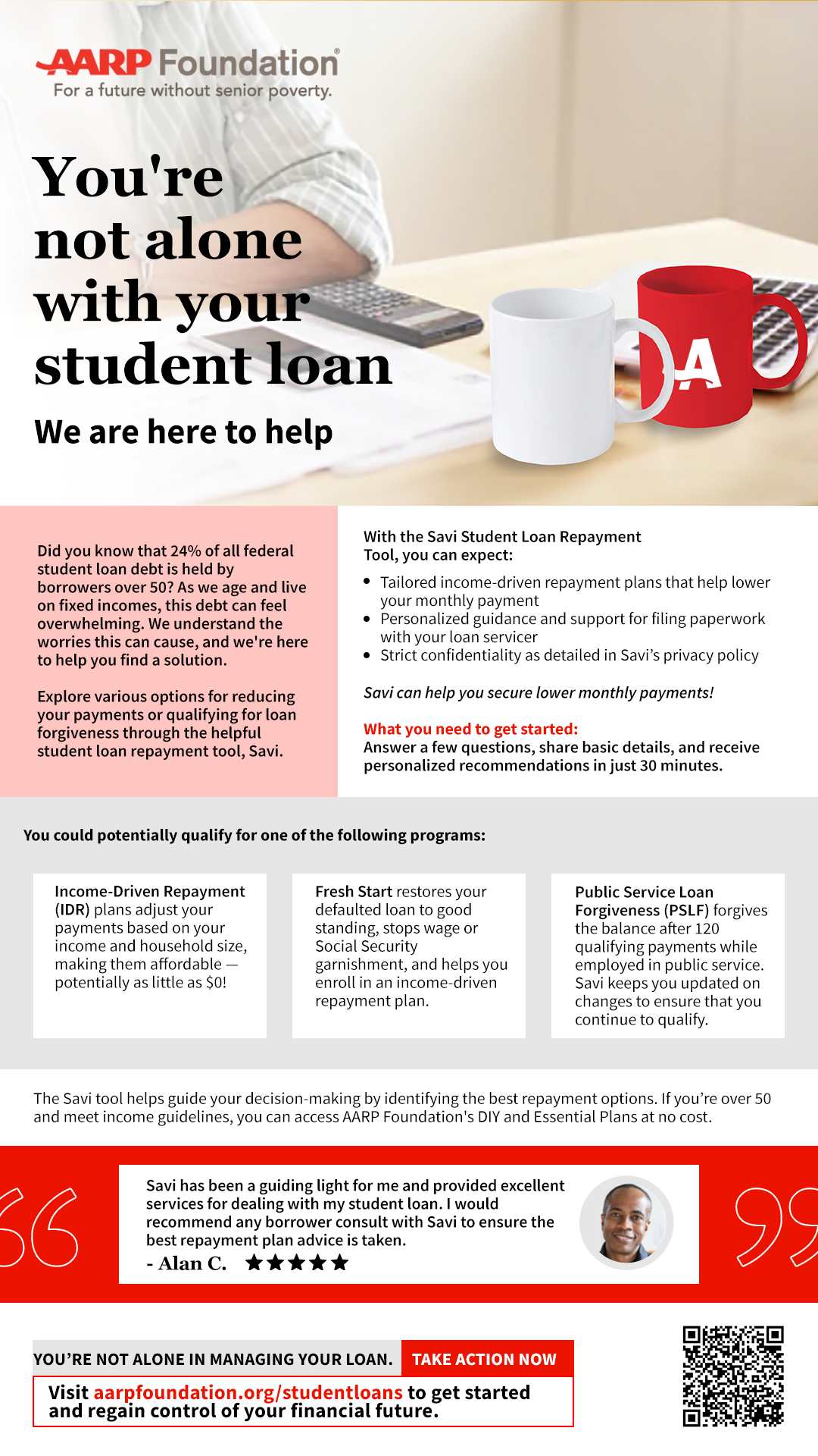 AARP Foundation, the charitable affiliate of AARP, works to end senior poverty by providing resources and help for older adults living with low income.